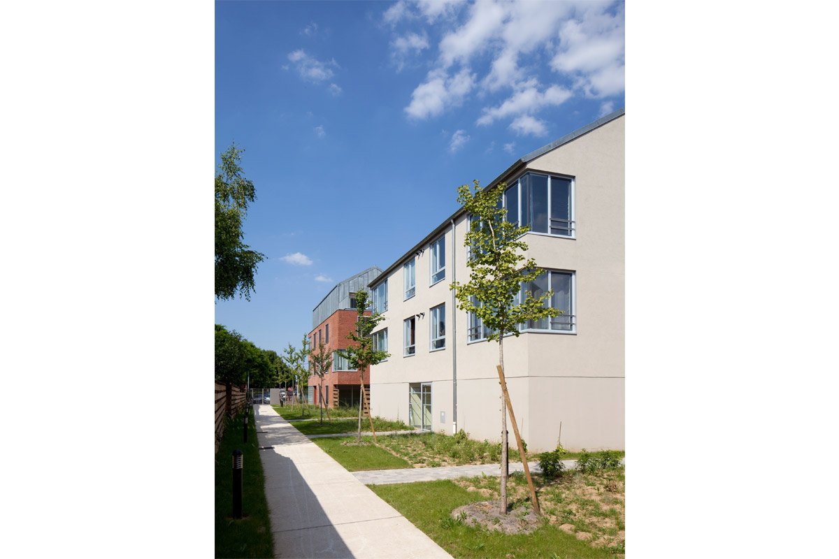 Dans un tissu pavillonnaire « déchiré « par des opérations des années 60, un système d’allées nord-sud, les façades en brique d’immeubles de belle facture soulignées par un très bel alignement d’arbres ont servis de support à la constitution d’un dispositif permettant d’assurer l’intégration urbaine de ces nouveaux logements. Nous proposons ainsi de reconduire le système d’allée nord-sud au travers d’une venelle qui permette la densification de la parcelle en venant desservir une série de trois bâtiments successifs, comme autant de maisonnées entourées de leur jardin.