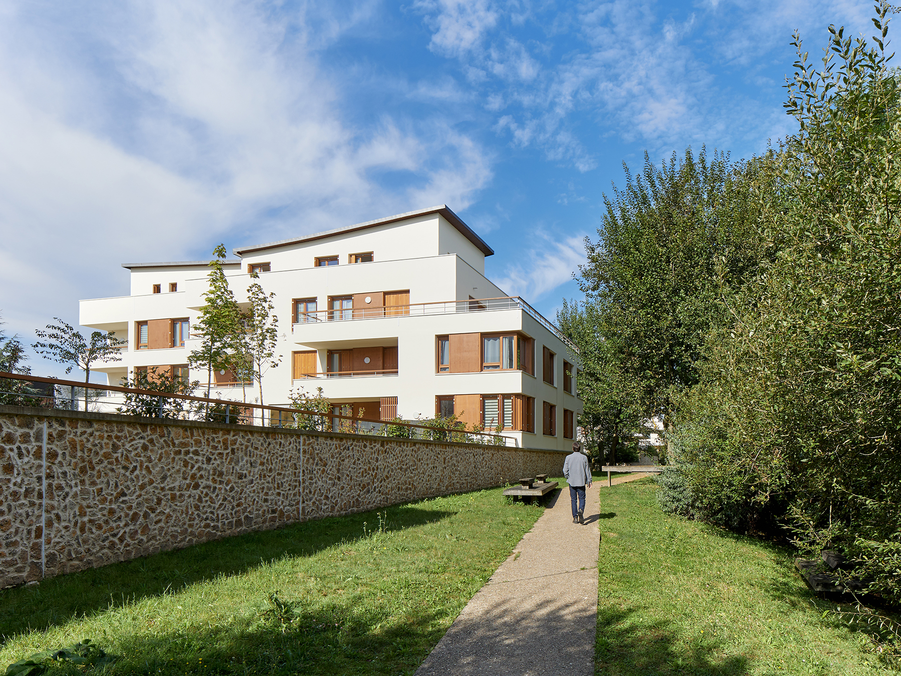 La force de ce projet repose sur un territoire marqué par la présence du canal passant au nord du terrain. Nous avons donc ouvert largement le territoire de la parcelle sur cet élément paysager majeur en fragmentant les bâtiments afin de libérer la plus grande transparence entre la rue et le canal mais aussi pour assurer le bon ensoleillement du jardin tout en offrant des logements d’angle bénéficiant des qualités propres à chaque orientation. Le socle permet de la contiguïté de l’habitat à rez-de -jardin et la promenade en bord de canal.